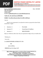 1. Our prices are as per the BOQ enclosed. Any change in specifications, rating and feeder quantity will attract price