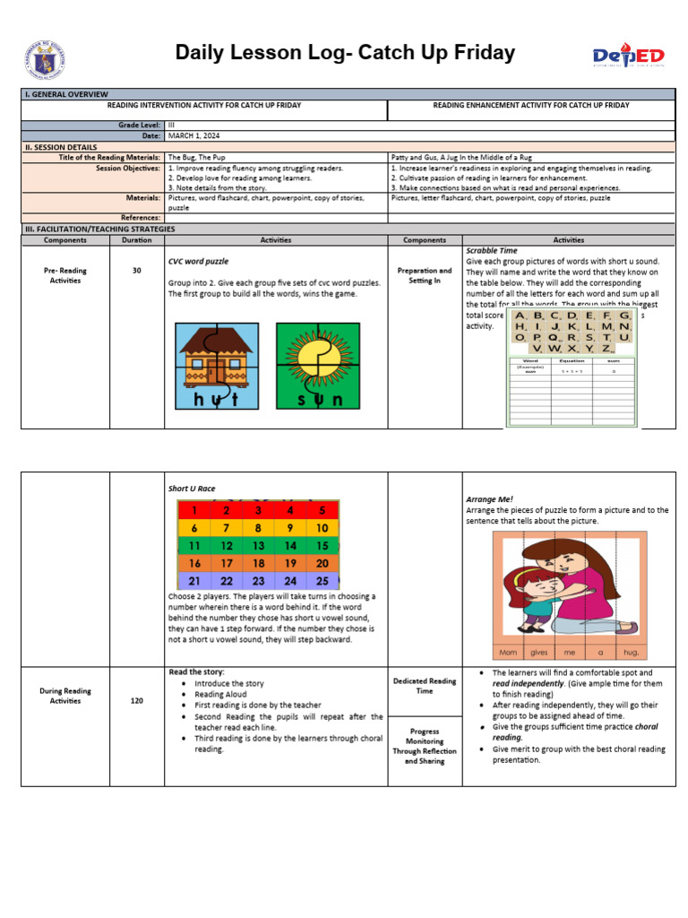 READING INTERVENTION ACTIVITY FOR CATCH UP FRIDAY READING ENHANCEMENT ACTIVITY FOR CATCH UP FRIDAY