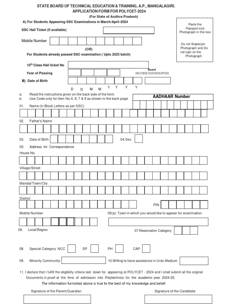 11. I declare that I fulfill the eligibility criteria laid down for appearing at POLYCET - 2024 and I shall submit all the original