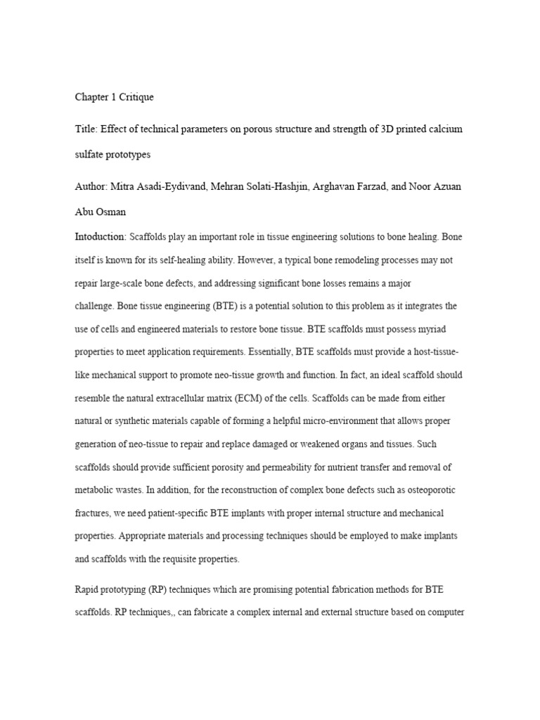 Intoduction: Scaffolds play an important role in tissue engineering solutions to bone healing. Bone