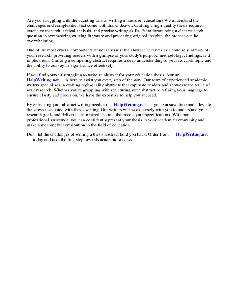 If you find yourself struggling to write an abstract for your education thesis, fear not. ⇒