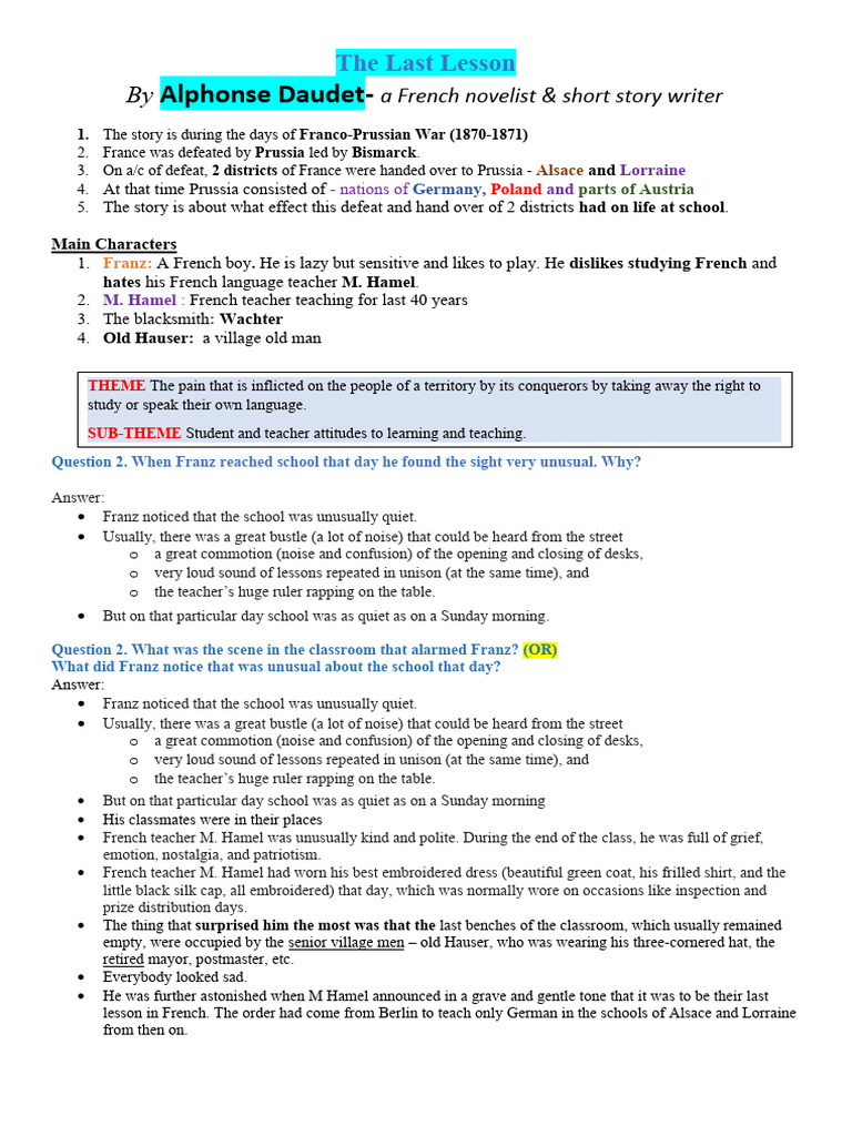 Question 3.“This is your last French lesson.” How did Franz react to this declaration of [Link]? (2010)