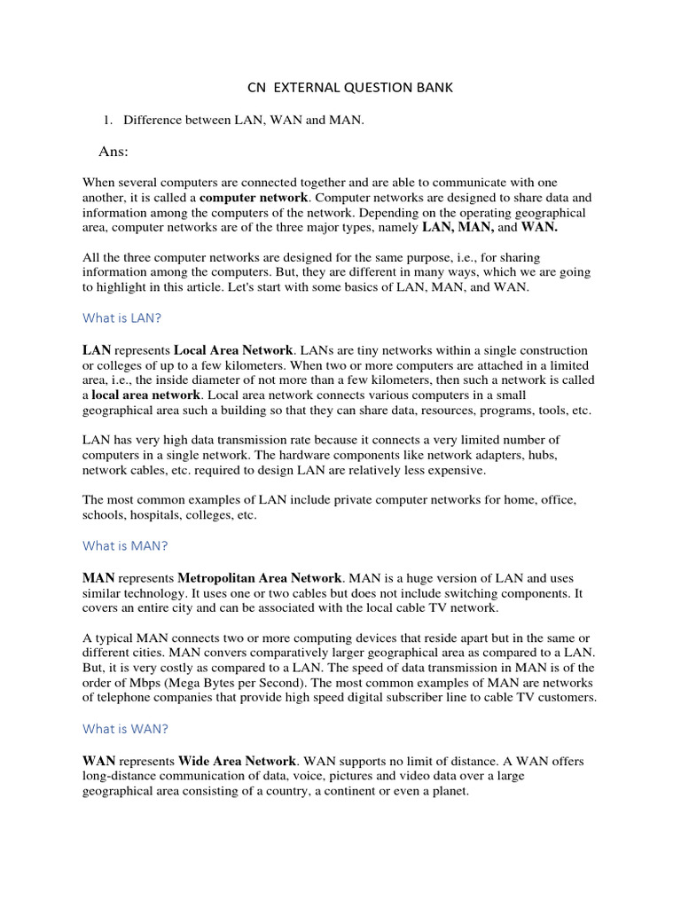 to highlight in this article. Let's start with some basics of LAN, MAN, and WAN.