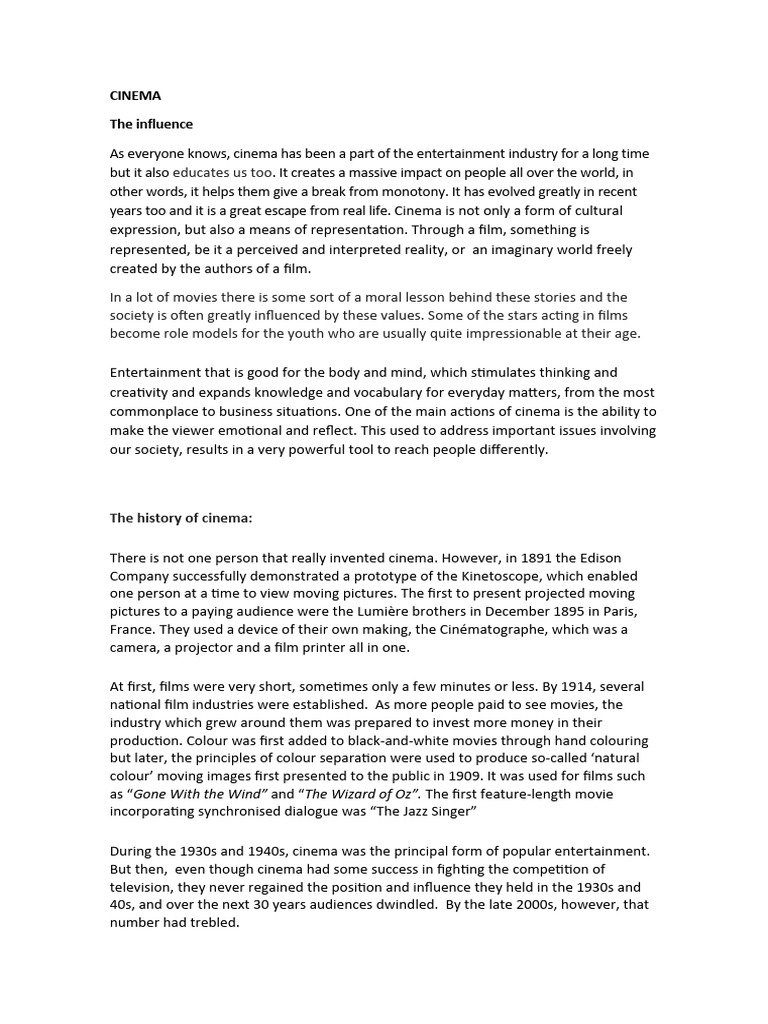 knowledge about how different people lead their lives. Cinema also teaches us a thing or