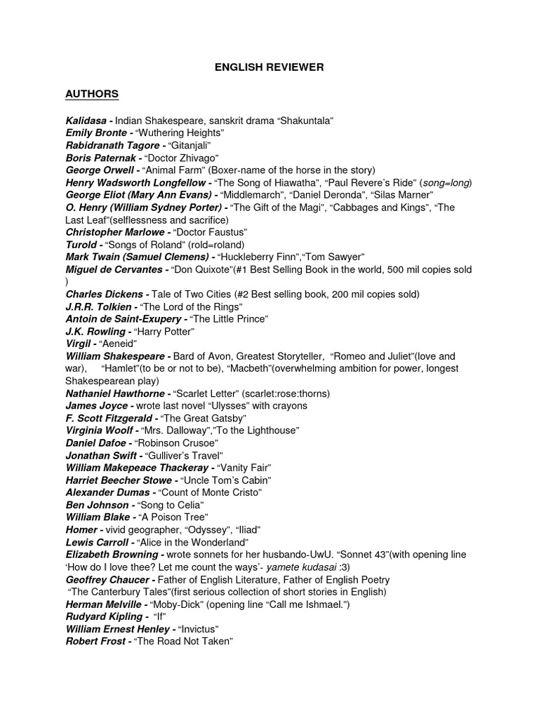 AUTHORS AND LITERARY PIECES