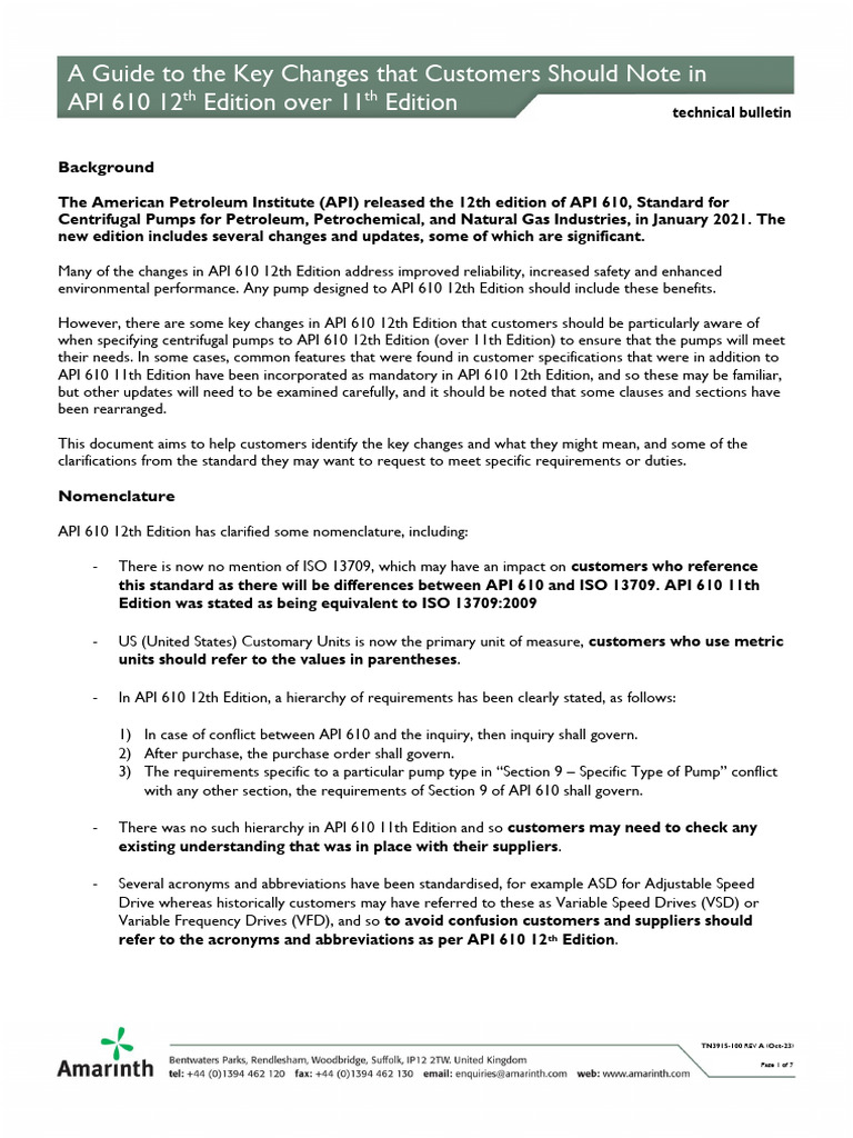 However, there are some key changes in API 610 12th Edition that customers should be particularly aware of