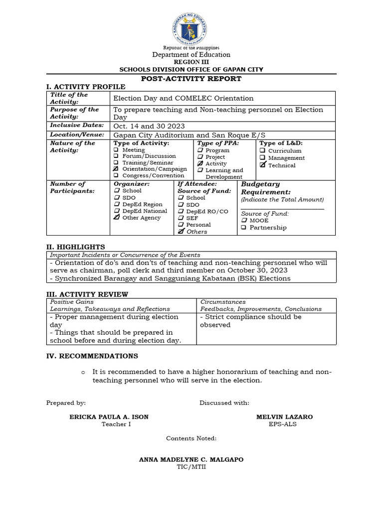 POST-ACTIVITY REPORT