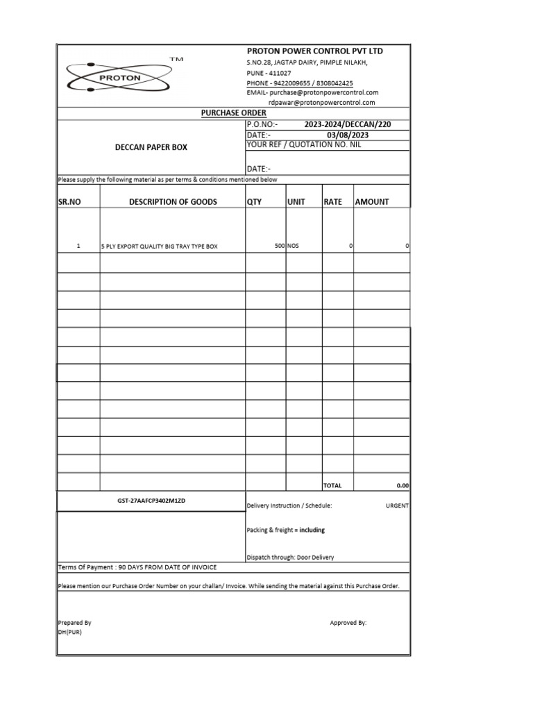 DECCAN PAPER BOX YOUR REF / QUOTATION NO. NIL