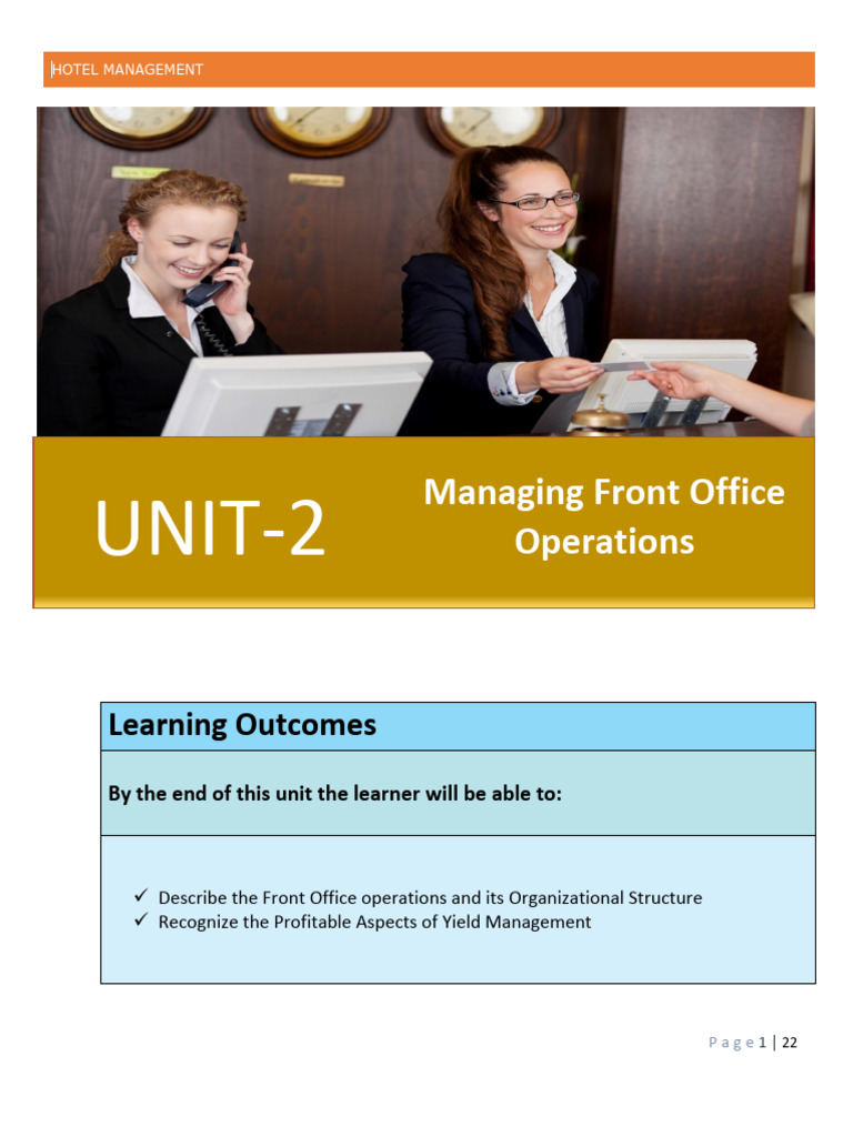 Regardless of the class or type of the hotel, the front office is its most central and vital focal point. The