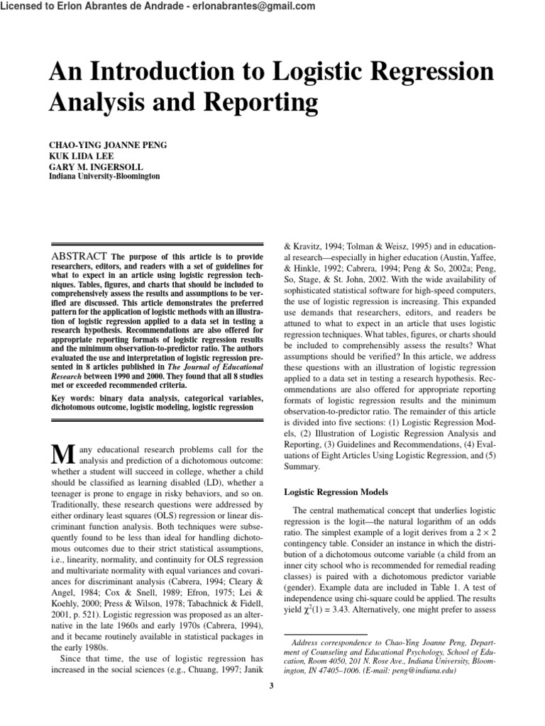 odds (73/23 for boys and 15/11 for girls); its natural loga- range of data (Peng, Manz, & Keck, 2001). Logistic regres-