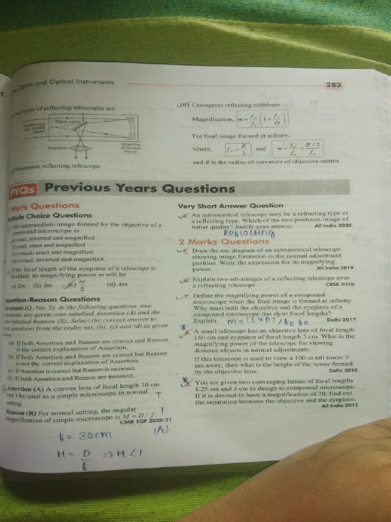 telescope for viewing distant objects when Case Based Questions (4 Marks)