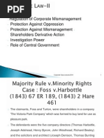 • In Foss v Harbottle (1842), two shareholders commenced legal action against
