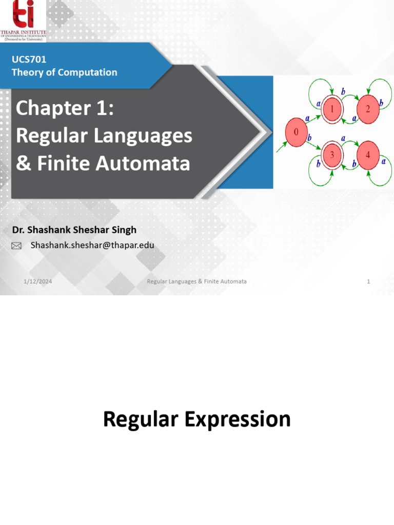 1/12/2024 Regular Languages & Finite Automata 1