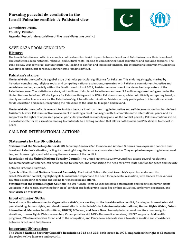Pakistan's history. Pakistan's active involvement in seeking a resolution aligns with its commitment to international peace and its
