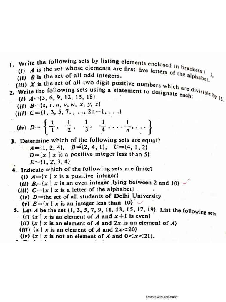 1. Write the following sets by listing elements