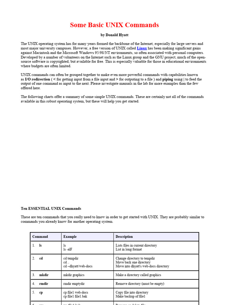 These are ten commands that you really need to know in order to get started with UNIX. They are probably similar to