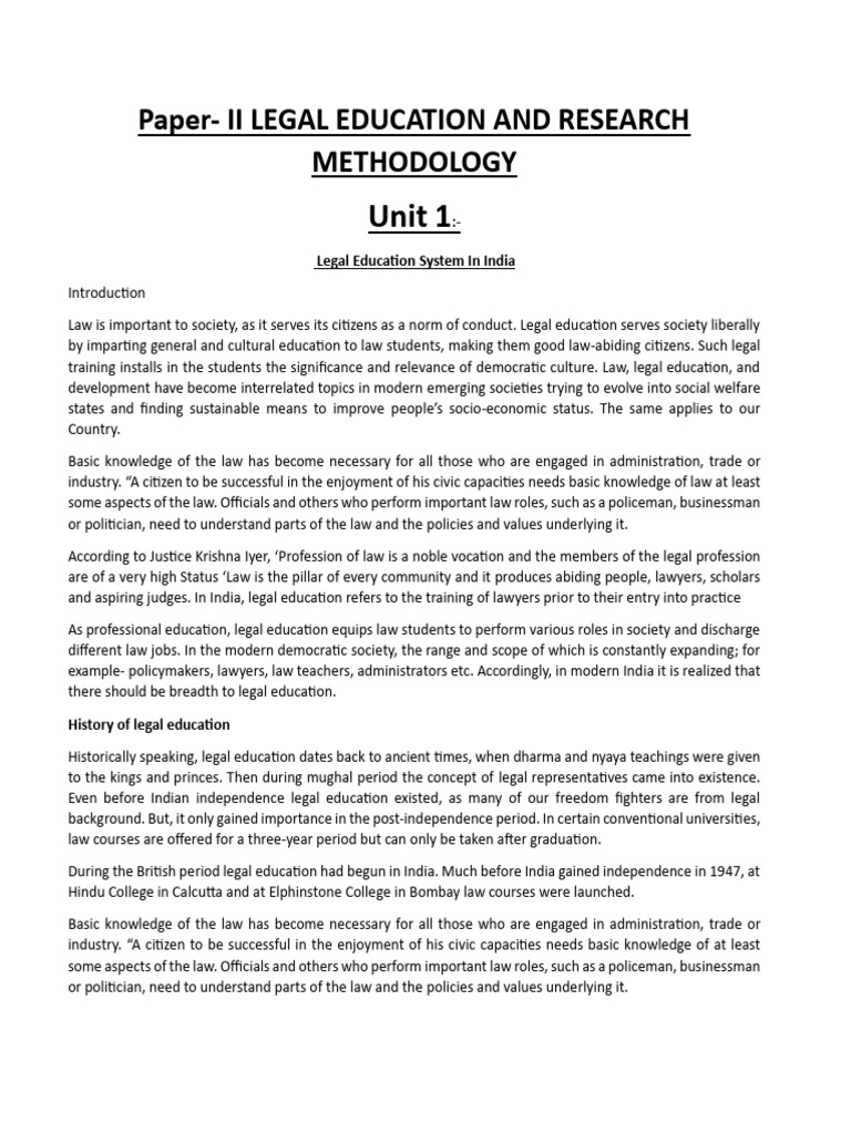 Legal Education and Reseach Complete Notes