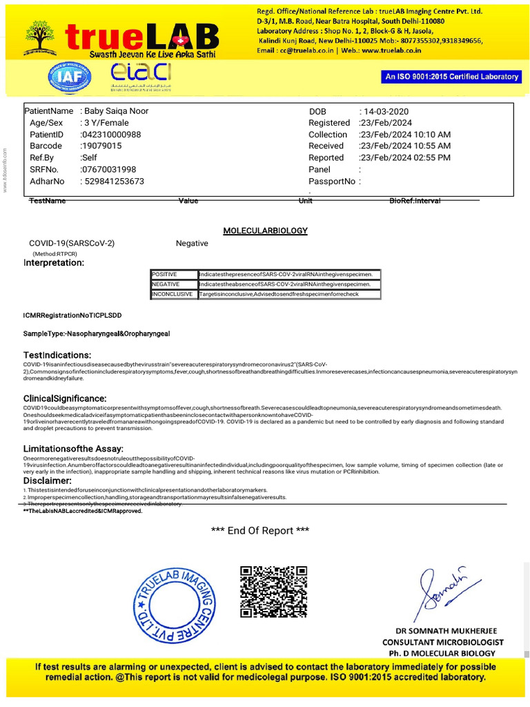 NEGATIVE IndicatestheabsenceofSARS-COV-2viralRNAinthegivenspecimen.
