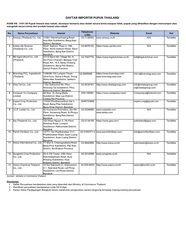 3 Kantor Atase Perdagangan Bangkok belum melakukan pengecekan secara langsung terhadap masing-masing perusahaan
