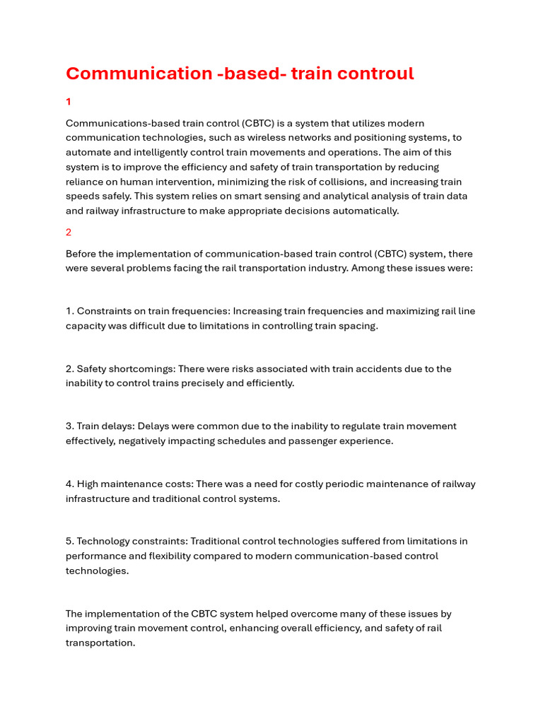4. Integration with other systems: The communication-based train control system was