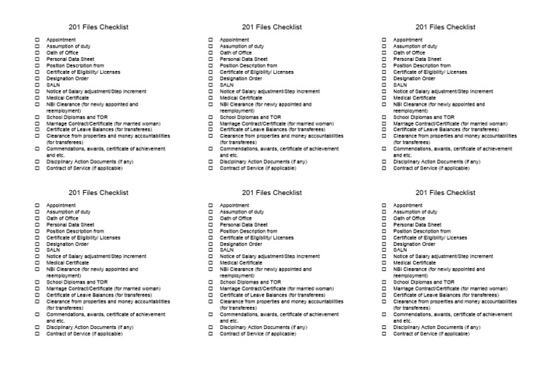 201 Files Checklist 201 Files Checklist 201 Files Checklist