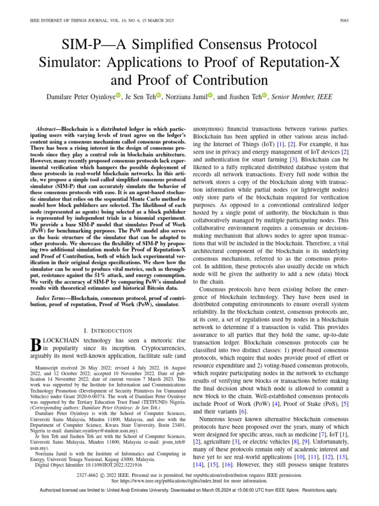 OYINLOYE et al.: SIM-P—A SIMPLIFIED CONSENSUS PROTOCOL SIMULATOR 5093