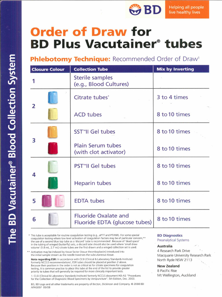 far the Colleton of agnostic Blood Specmens by Veipuncture’ th Eaton, Dec. 2003