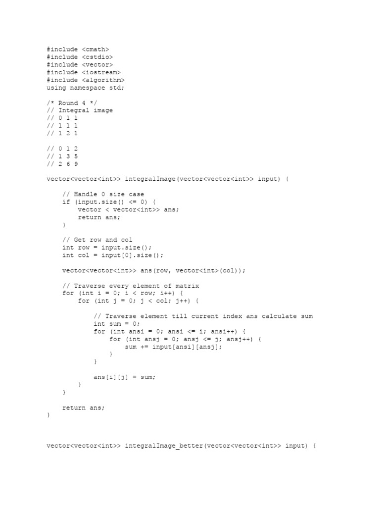 vector<vector<int>> integralImage_better(vector<vector<int>> input) {