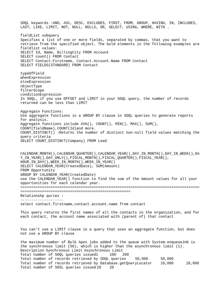SOQL keywords :AND, ASC, DESC, EXCLUDES, FIRST, FROM, GROUP, HAVING, IN, INCLUDES,