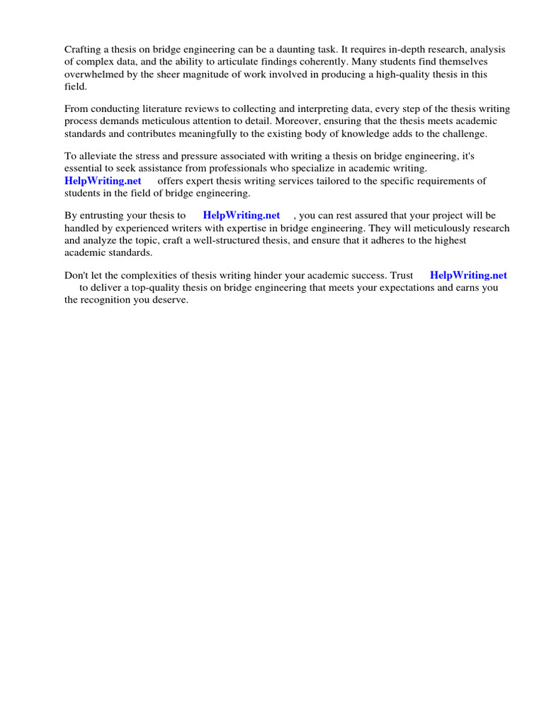 To alleviate the stress and pressure associated with writing a thesis on bridge engineering, it's