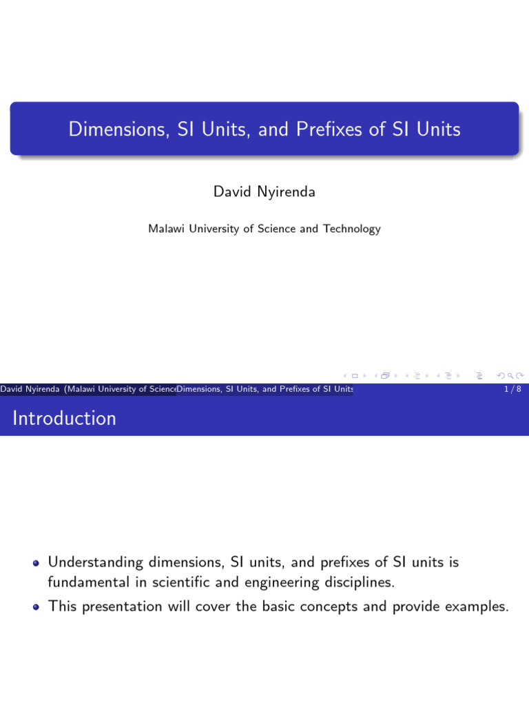 SI Units, and Prefixes of SI Units 1/8