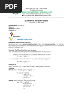 value. In mathematical terms, f (f −1 (x)) = x and f −1 (f (x)) = x for all