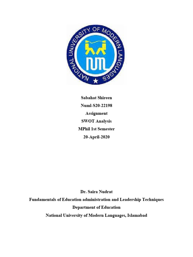 defined new objectives. By performing SWOT analysis an organization can know and evolve its