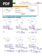 Circle Review Worksheet: Area: A = πr Radius: 5.3 m Diameter: 10.6 m Circumference: 𝐶 = 𝜋𝑑
