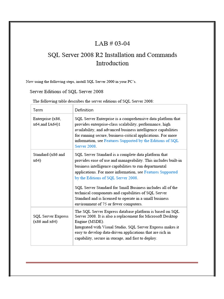 SQL Server 2008 R2 Installation and Commands