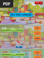 a) on b) at c) in