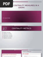 A measure of the degree to which a given node (or edge) lies on the shortest paths (geodesics) between other nodes in the graph.