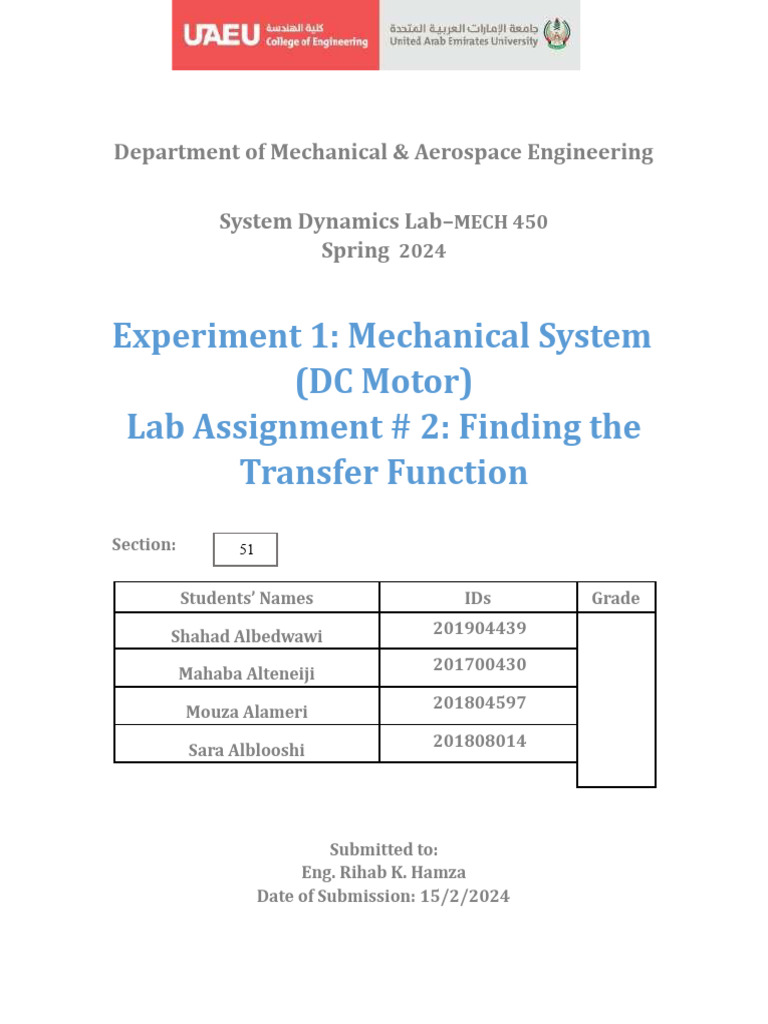 System Dynamics Lab–MECH 450