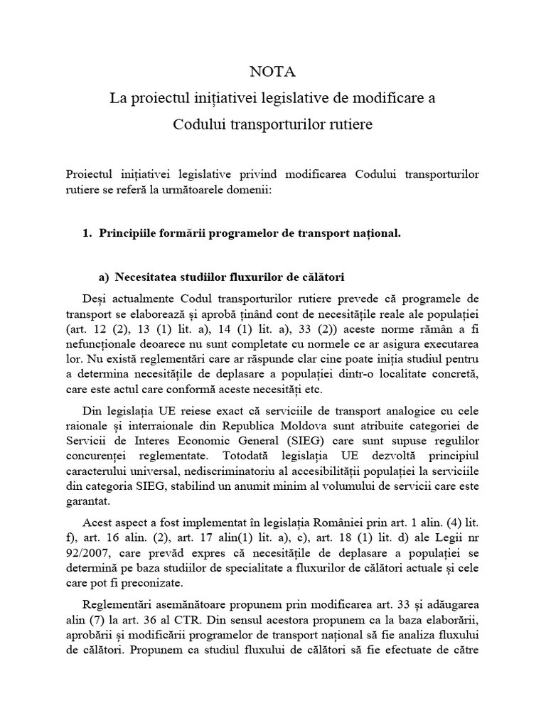 Proiectul inițiativei legislative privind modificarea Codului transporturilor