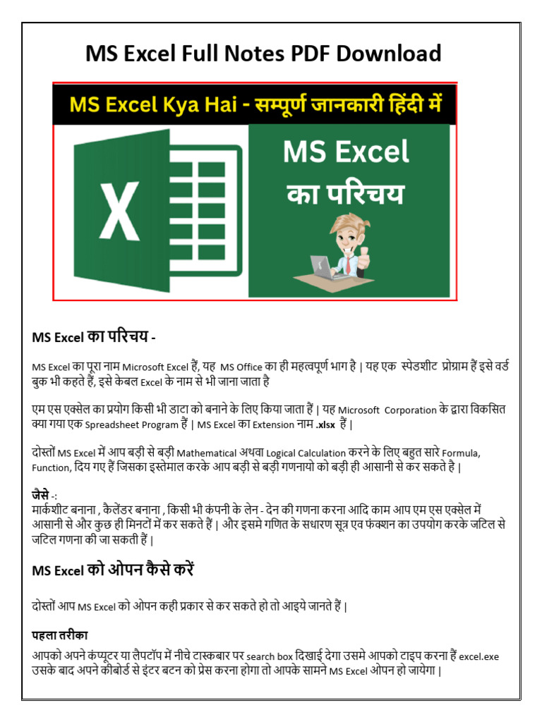 MS Excel का पू रा नाम Microsoft Excel हैं , यह MS Office का ही महत्वपूर्ण भाग है | यह एक स्पेडशीट प्रोग्राम हैं इसे वडण