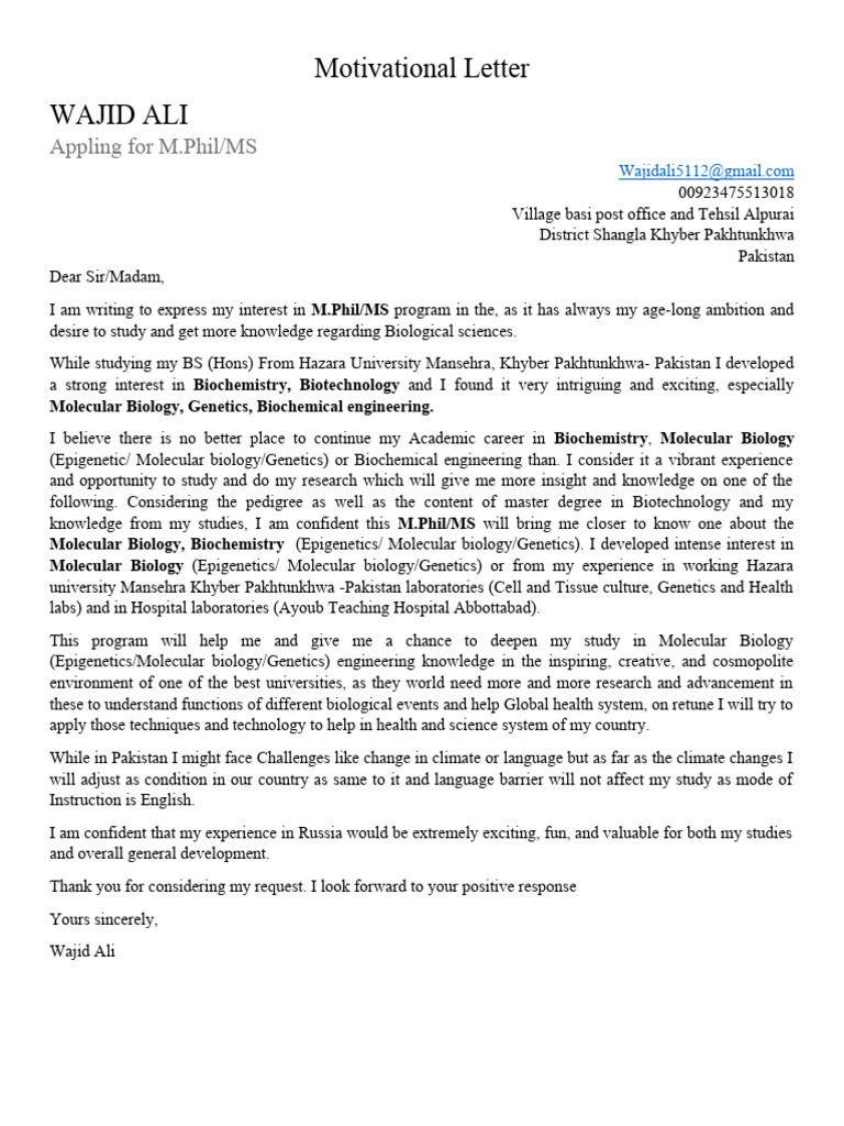 Motivational Letter