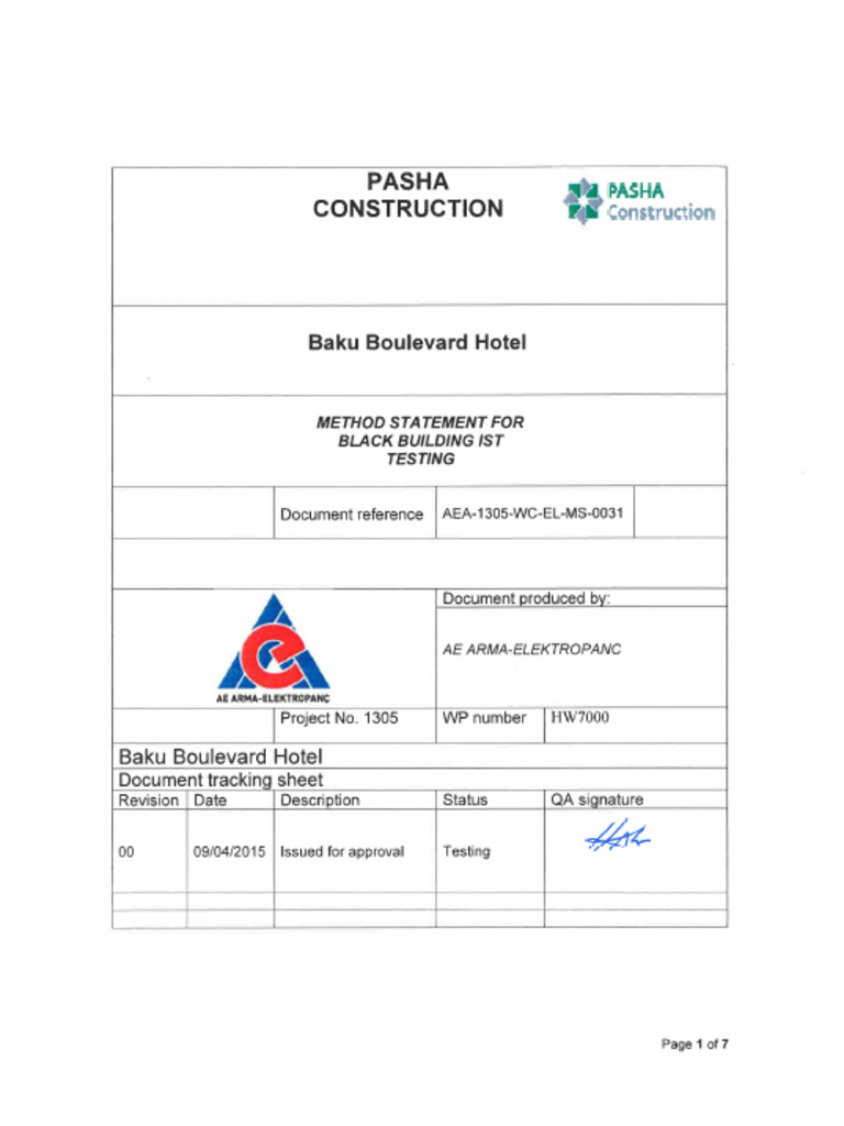 This Black Building IST Testing Method Statement has been prepared by AE ARMA-ELEKTROPANC for