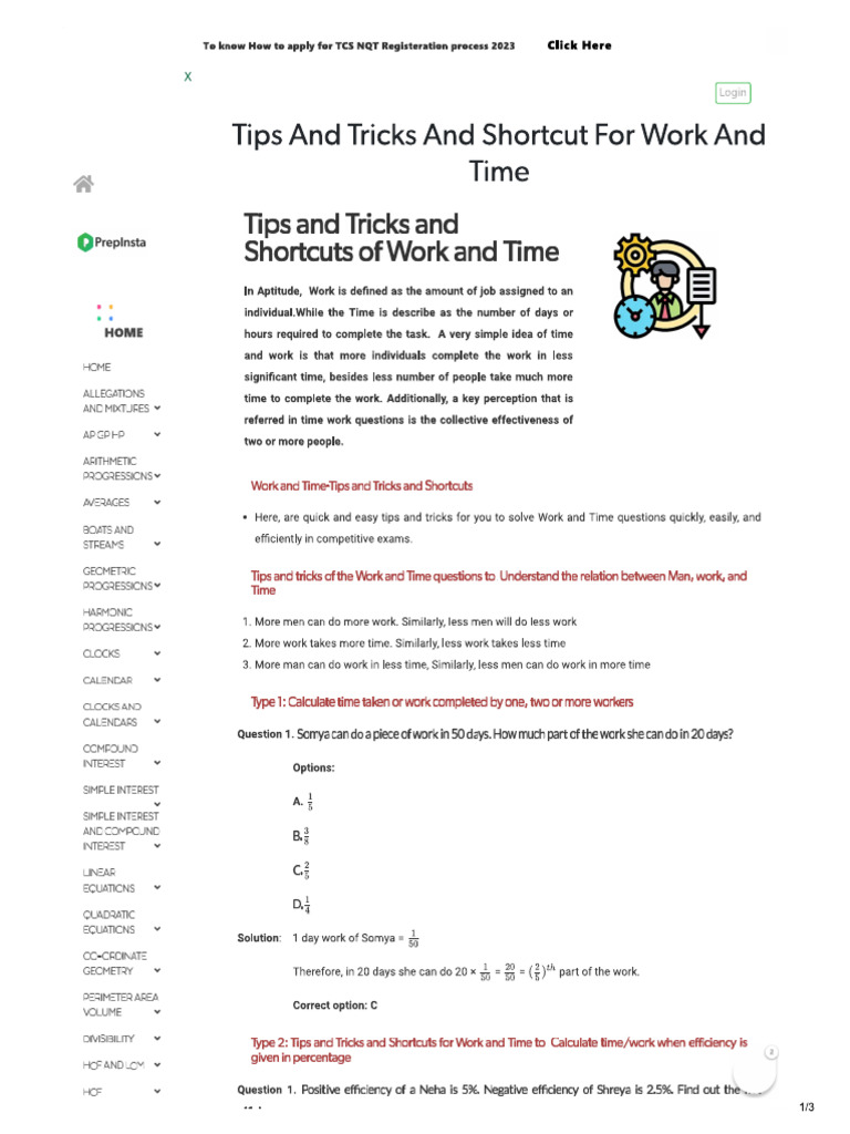 Tipsand ticks ofthe Workand Time questions to Understand the relation between Man, work, and