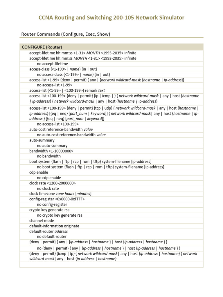 Router Commands (Configure, Exec, Show)