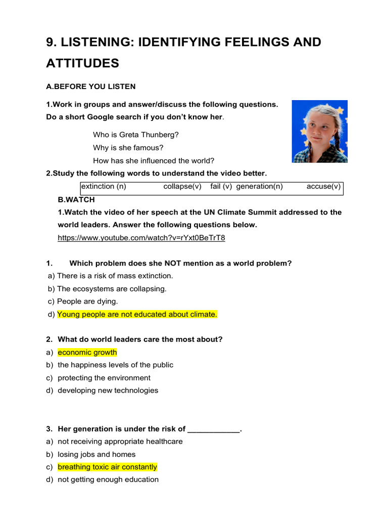 TEDU ELS 2020-2021 Fall Term Material Pack – Answer Key / A Level