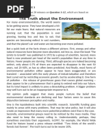 less and less. However, environment is not just a piece of forest that we go hiking or a