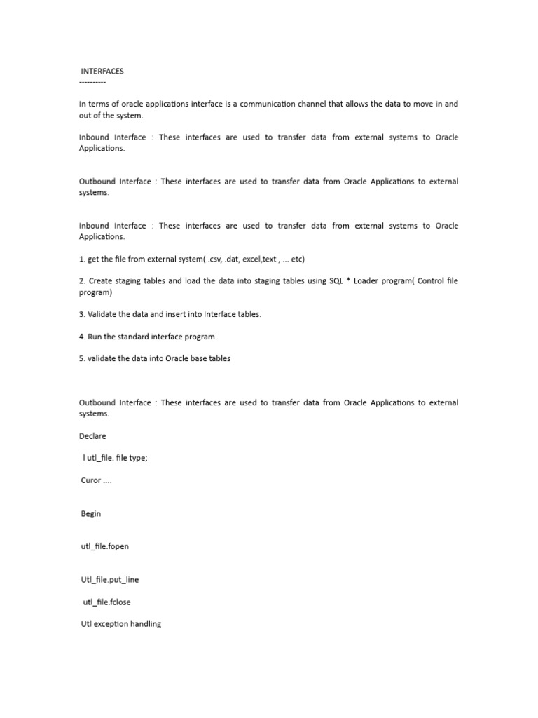 Inbound Interface : These interfaces are used to transfer data from external systems to Oracle