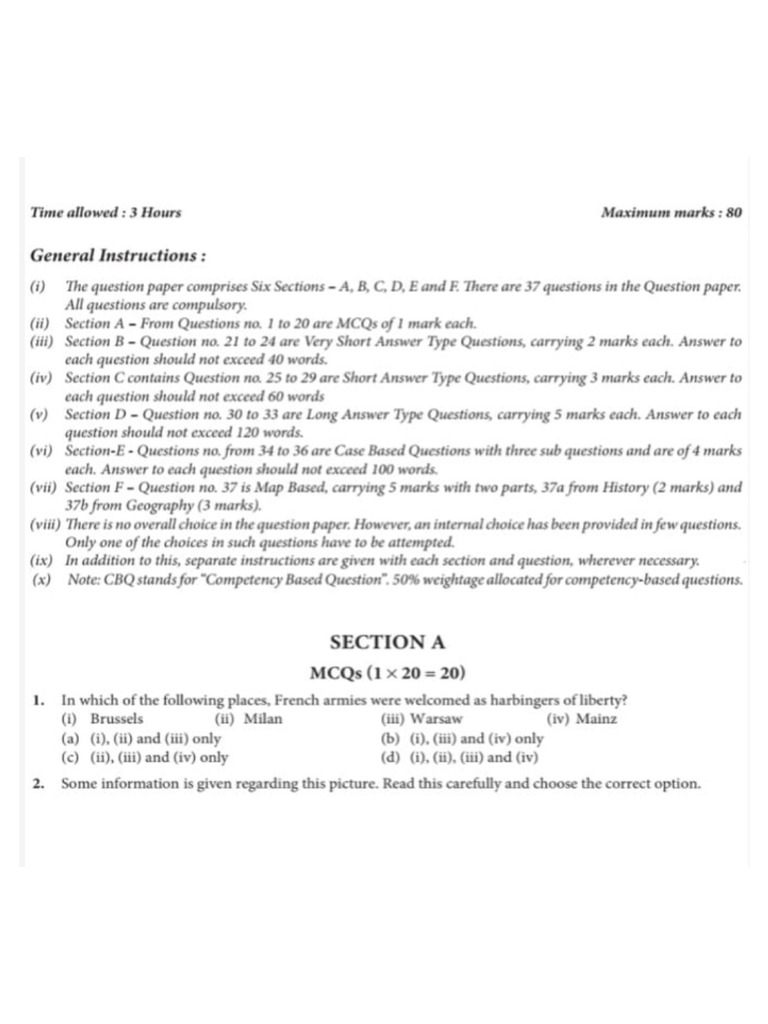 (vii) Section F ~ Question no. 37 is Map Based, carrying 5 marks with two parts, 37a from History (2 marks) and