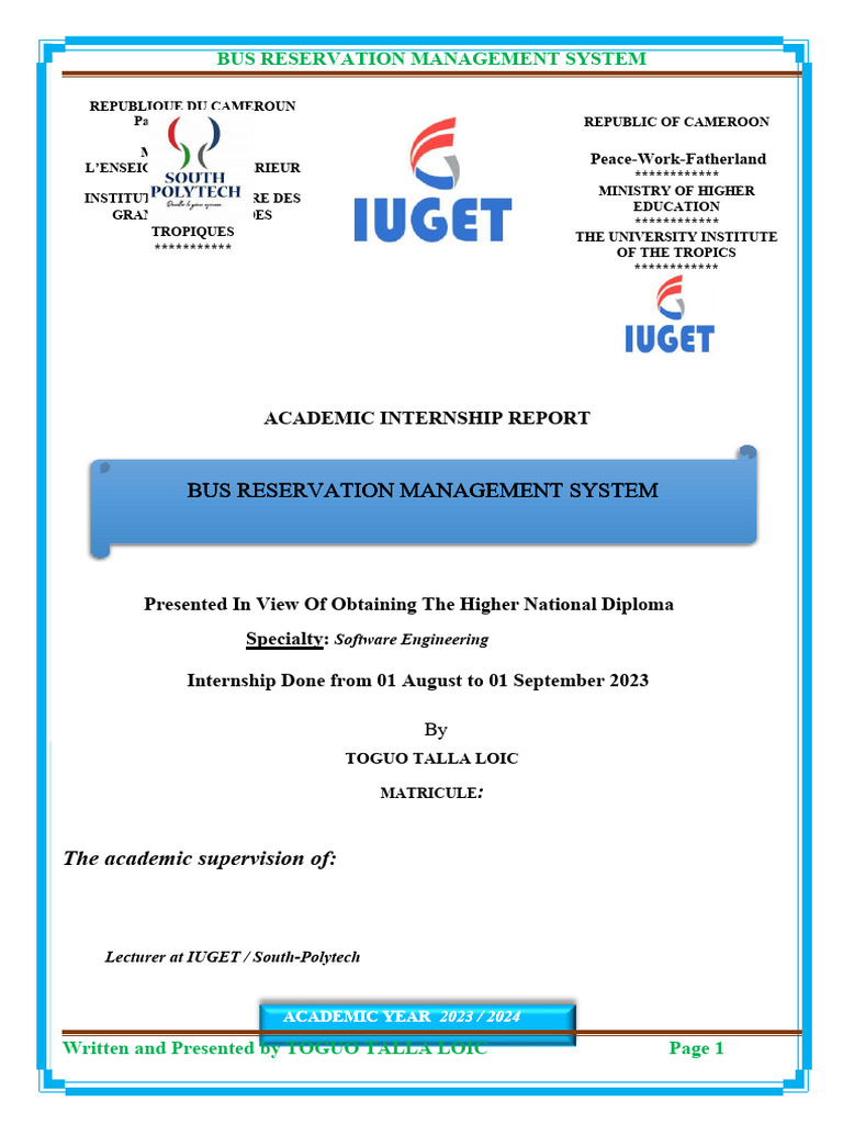 I, Mr. TOGUO TALLA LOIC, hereby declare that I am the sole author of this report. I