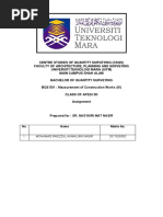 This document appears to be a template for taking off quantities from construction drawings for a project in the Faculty of Architecture, Planning and Surveying at UiTM Shah Alam. The template includes sections for the project name, page number, drawing number, and name of the person taking off the quantities from the drawings.